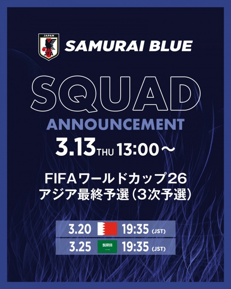 2025-03-07 20:10:45官方:日本隊將于13日公布本月世預賽大名單