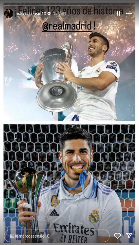 2025-03-07 20:14:30舊將阿森西奧曬昔日捧杯照,慶祝皇馬成立123周年