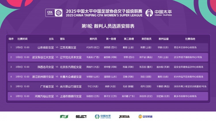 2025-03-08 15:03:252025中國太平女超聯賽第1輪 裁判人員選派名單 ???