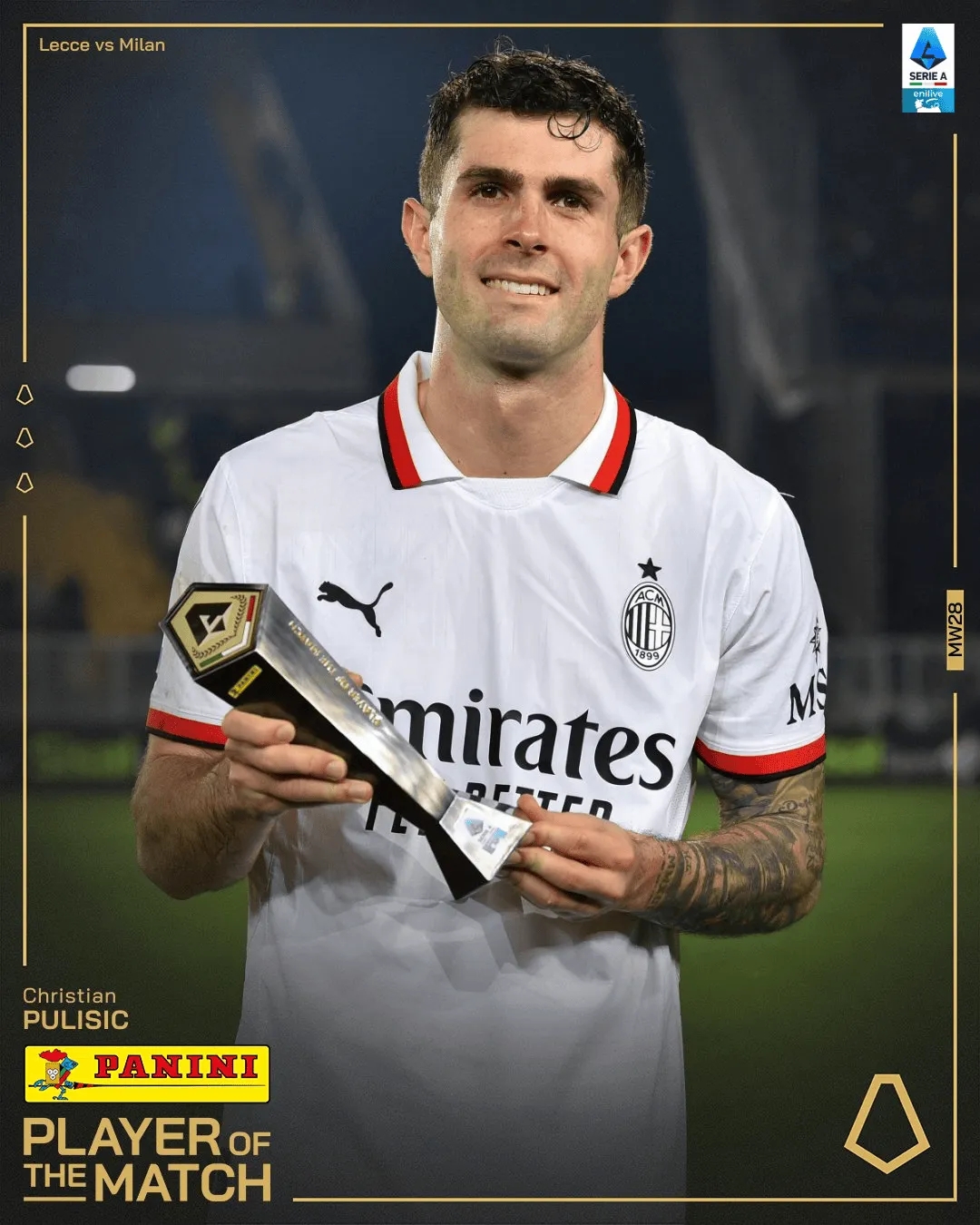 2025-03-09 06:13:26美國隊長!官方:普利西奇當選AC米蘭vs萊切全場最佳球員